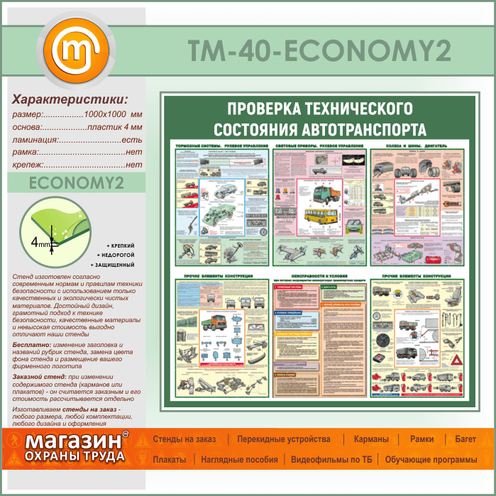 Стенд «Проверка технического состояния автотранспорта» (TM-40-ECONOMY2) в Обнинске купить