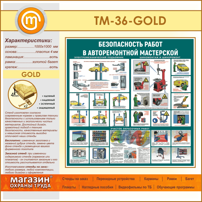 Стенд «Безопасность работ в авторемонтной мастерской» (TM-36-GOLD) в Обнинске купить