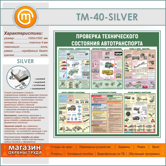 Стенд «Проверка технического состояния автотранспорта» (TM-40-SILVER) в Обнинске купить