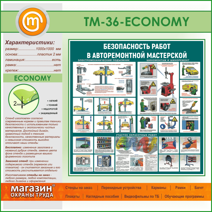 Стенд «Безопасность работ в авторемонтной мастерской» (TM-36-ECONOMY) в Обнинске купить