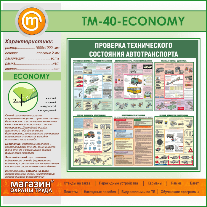 Стенд «Проверка технического состояния автотранспорта» (TM-40-ECONOMY) в Обнинске купить