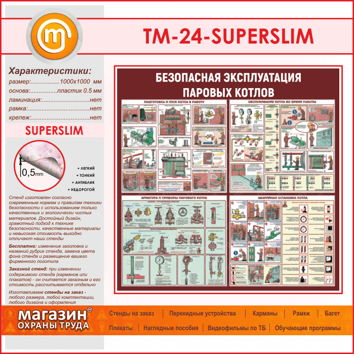 Стенд «Безопасная эксплуатация паровых котлов» (TM-24-SUPERSLIM) в Обнинске купить