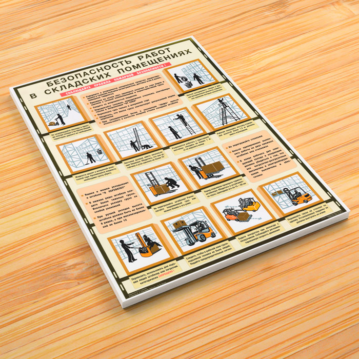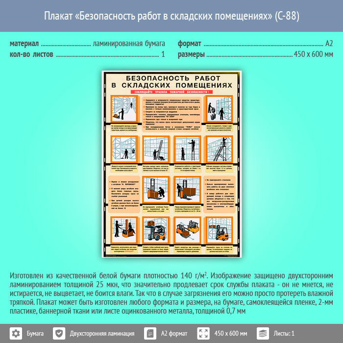 Плакат «Безопасность работ в складских помещениях» (С-88, ламинированная бумага, А2, 1 лист) в Обнинске купить