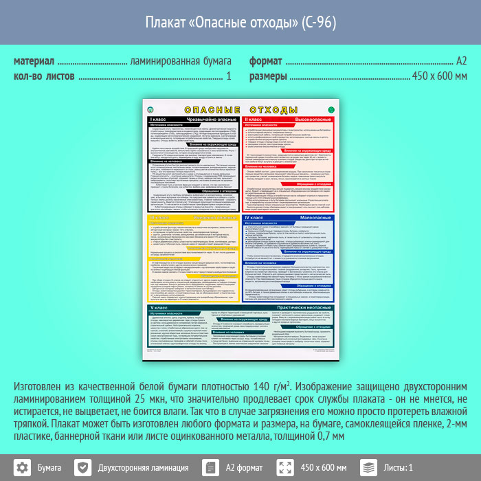 Плакат «Опасные отходы» (С-96, ламинированная бумага, А2, 1 лист) в Обнинске купить