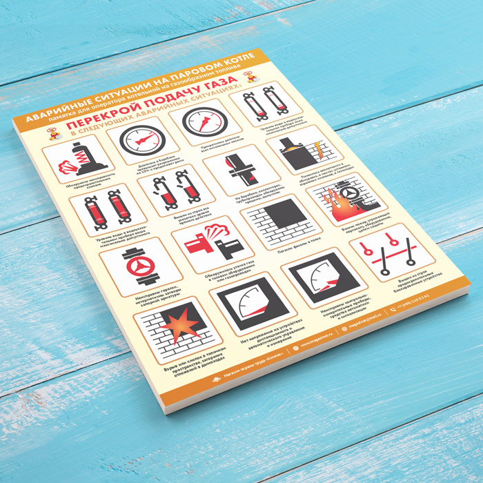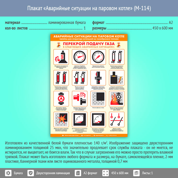 Плакат «Аварийные ситуации на паровом котле» (М-114, ламинированная бумага, А2, 1 лист) в Обнинске купить