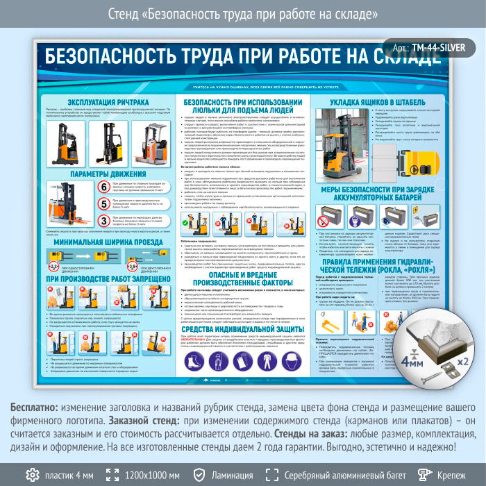 Стенд «Безопасность труда при работе на складе» (TM-44-SILVER) в Обнинске купить