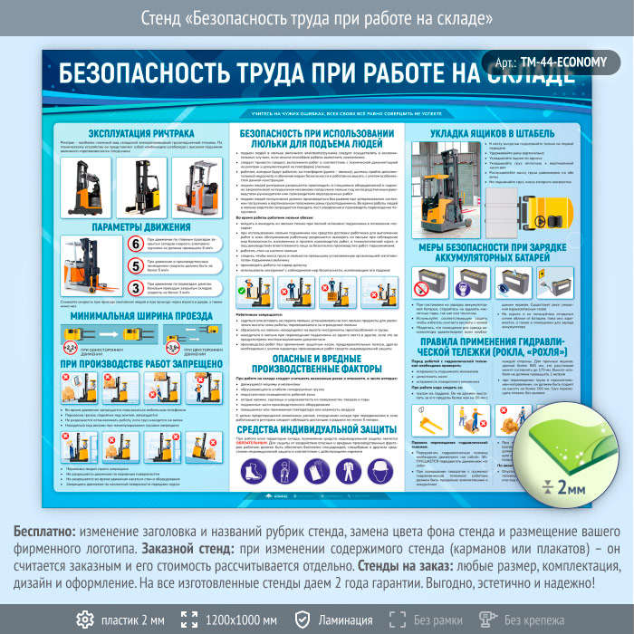 Стенд «Безопасность труда при работе на складе» (TM-44-ECONOMY) в Обнинске купить