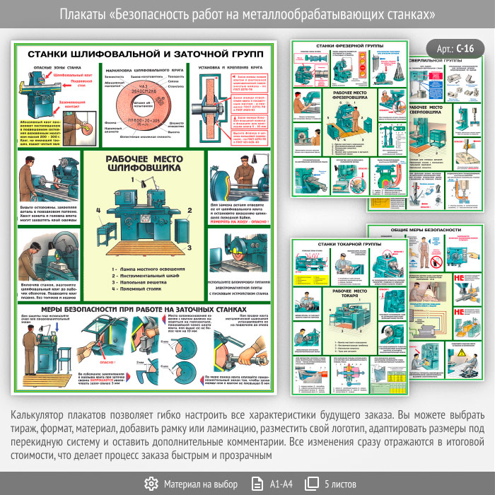 Плакат «Безопасность работ на металлообрабатывающих станках» (С-16, 5 листов) в Обнинске купить
