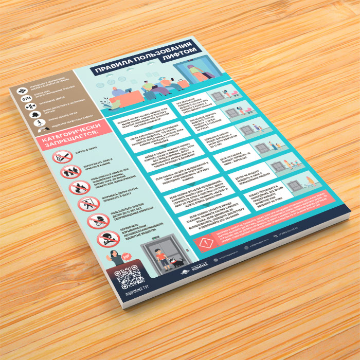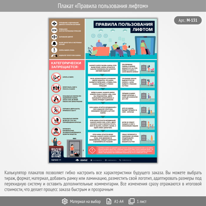 Плакат «Правила пользования лифтом» с QR (М-131, 1 лист) в Обнинске купить