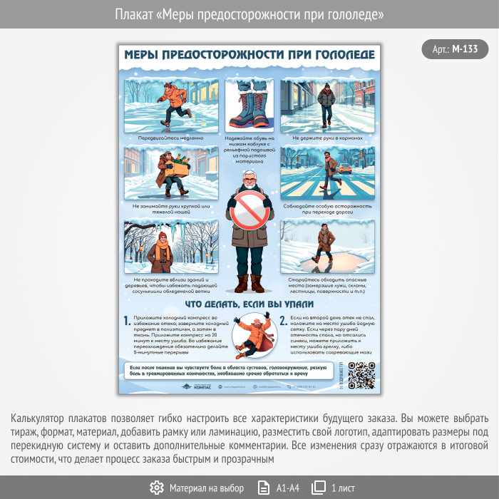 Плакат «Меры предосторожности при гололеде» с QR (М-133, 1 лист) в Обнинске купить