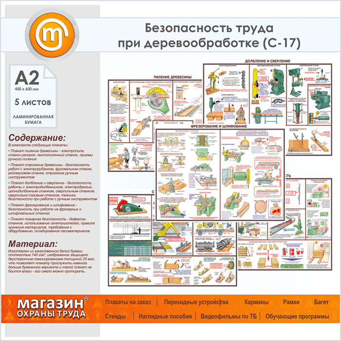 Плакаты «Безопасность труда при деревообработке» (С-17, ламинированная бумага, А2, 5 листов) в Обнинске купить