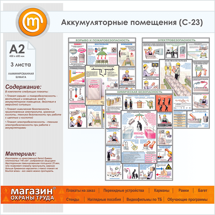 Плакаты «Аккумуляторные помещения» (С-23, ламинированная бумага, А2, 3 листа) в Обнинске купить