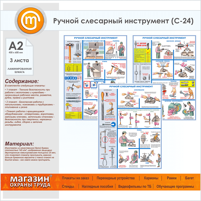 Плакаты «Ручной слесарный инструмент» (С-24, ламинированная бумага, А2, 3 листа) в Обнинске купить