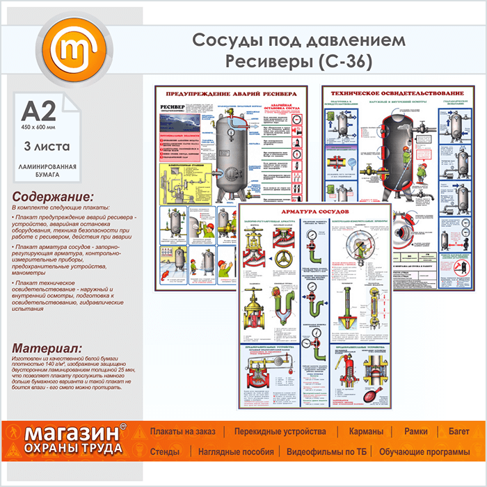 Плакаты «Сосуды под давлением. Ресиверы» (С-36, ламинированная бумага, А2, 3 листа) в Обнинске купить