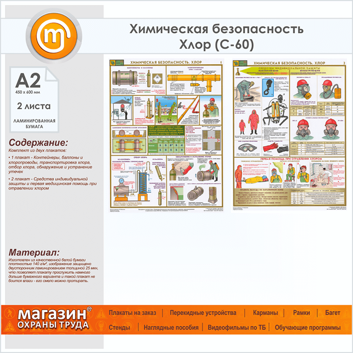 Плакаты «Химическая безопасность. Хлор» (С-60, ламинированная бумага, А2, 2 листа) в Обнинске купить