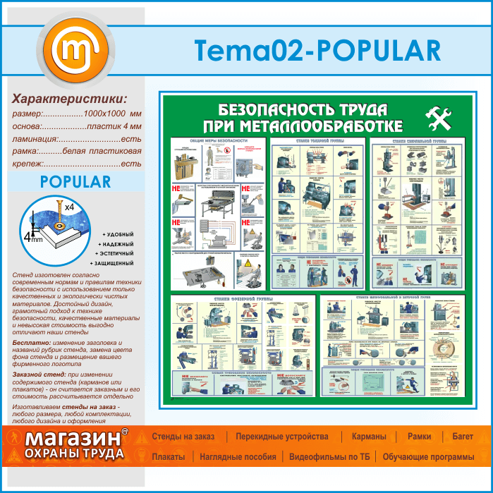 Стенд «Безопасность труда при металлообработке» (TM-02-POPULAR) в Обнинске купить