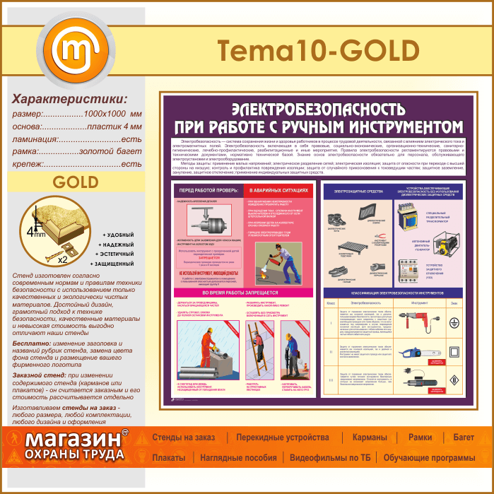 Стенд «Электробезопасность при работе с ручным инструментом» (TM-10-GOLD) в Обнинске купить