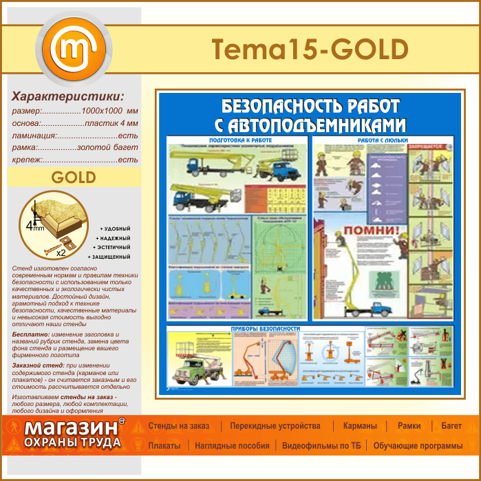 Стенд «Безопасность работ с автоподъемниками» (TM-15-GOLD) в Обнинске купить