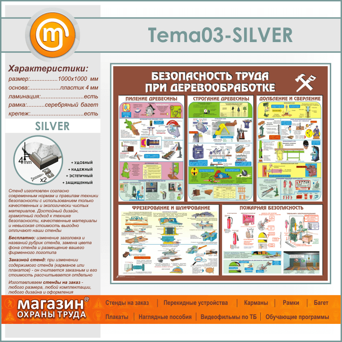 Стенд «Безопасность труда при деревообработке» (TM-03-SILVER) в Обнинске купить