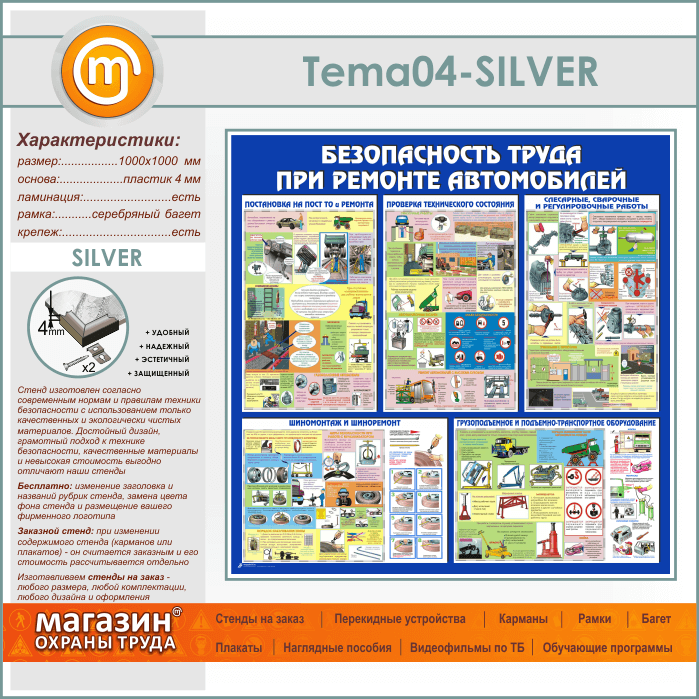 Стенд «Безопасность труда при ремонте автомобилей» (TM-04-SILVER) в Обнинске купить