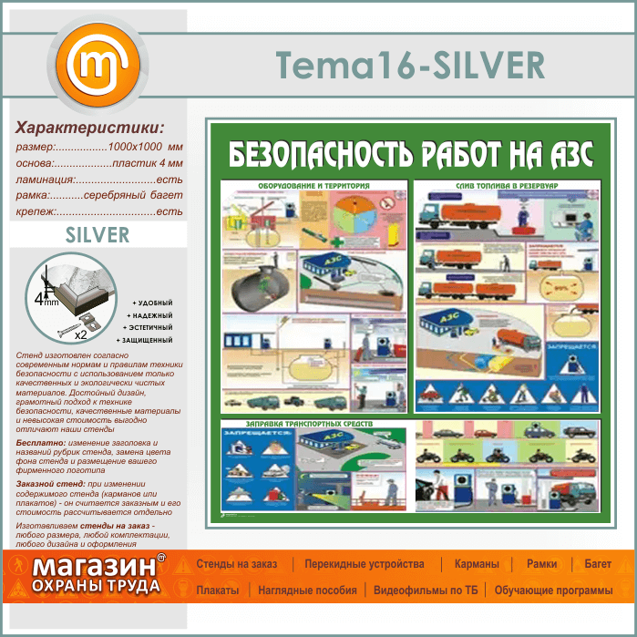 Стенд «Безопасность работ на автозаправочных станциях» (TM-16-SILVER) в Обнинске купить