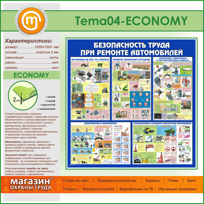 Стенд «Безопасность труда при ремонте автомобилей» (TM-04-ECONOMY) в Обнинске купить