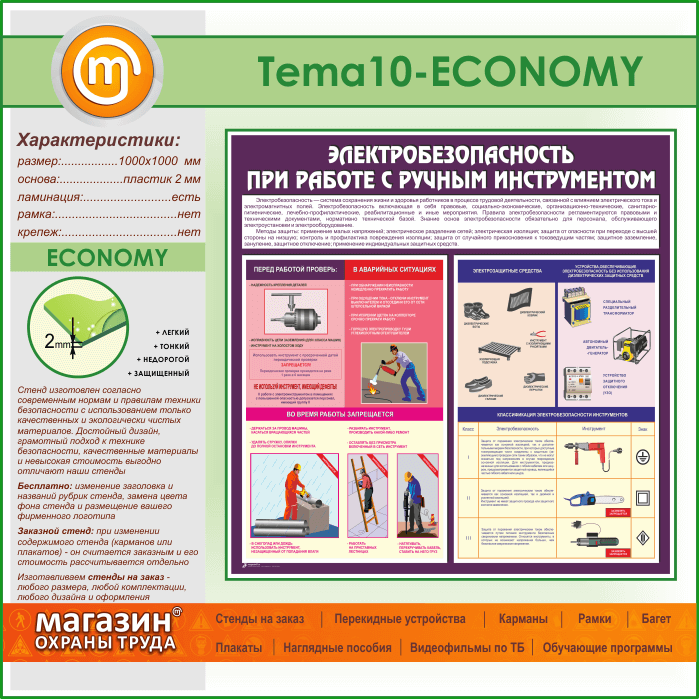 Стенд «Электробезопасность при работе с ручным инструментом» (TM-10-ECONOMY) в Обнинске купить