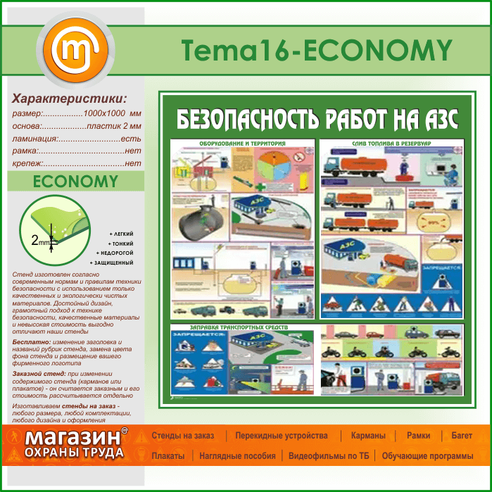 Стенд «Безопасность работ на автозаправочных станциях» (TM-16-ECONOMY) в Обнинске купить