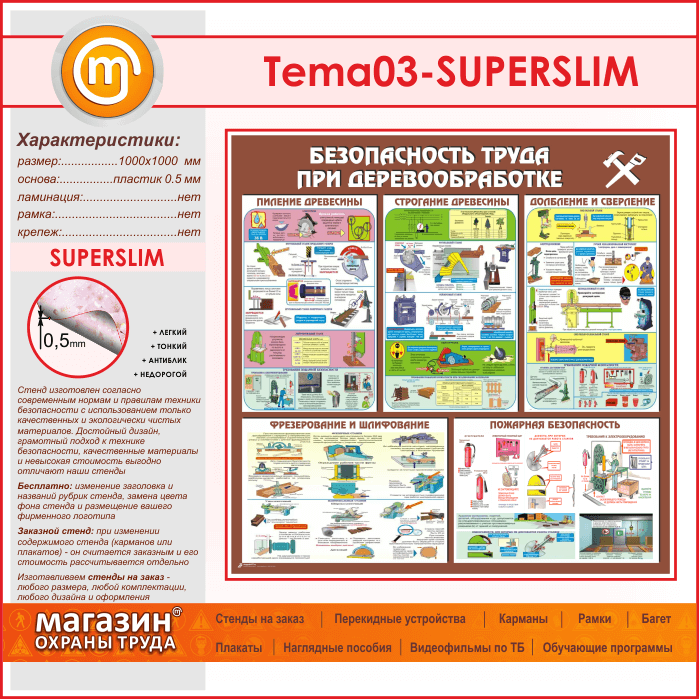 Стенд «Безопасность труда при деревообработке» (TM-03-SUPERSLIM) в Обнинске купить