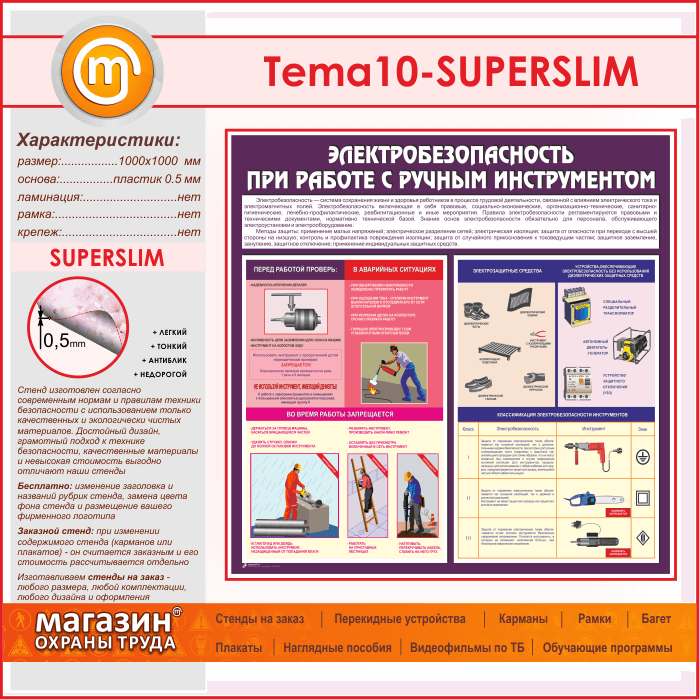 Стенд «Электробезопасность при работе с ручным инструментом» (TM-10-SUPERSLIM) в Обнинске купить