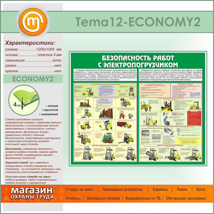 Стенд «Безопасность работ с электропогрузчиком» (TM-12-ECONOMY2) в Обнинске купить