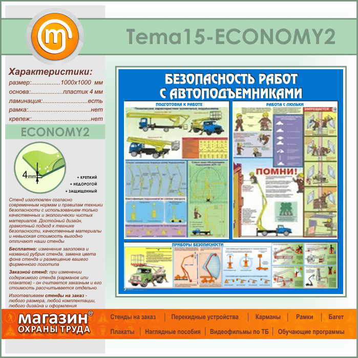 Стенд «Безопасность работ с автоподъемниками» (TM-15-ECONOMY2) в Обнинске купить