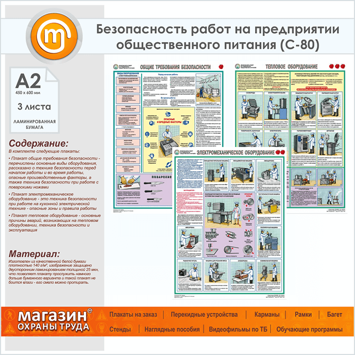 Плакат « Правила охраны труда на предприятии общественного питания» (С-80, ламинированная бумага, А2, 3 листа) в Обнинске купить