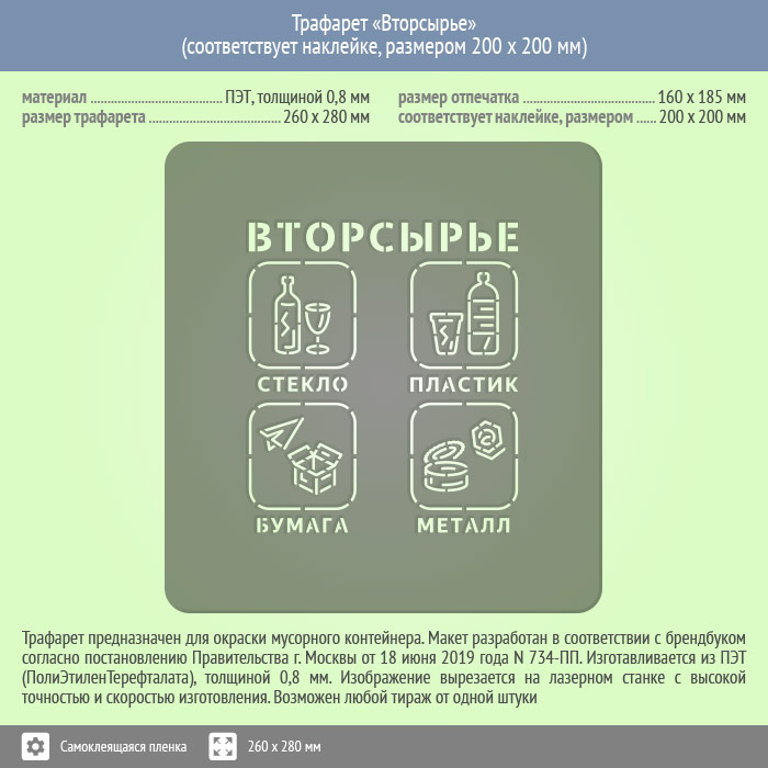 Трафарет «Вторсырье» (соответствует наклейке, размером 200х200 мм) в Обнинске купить