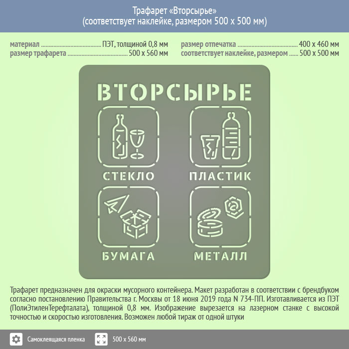 Трафарет «Вторсырье» (соответствует наклейке, размером 500х500 мм) в Обнинске купить