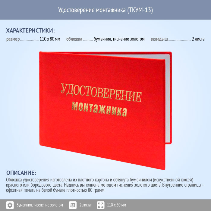 Бланк удостоверения монтажника (ТКУМ-13) в Обнинске купить