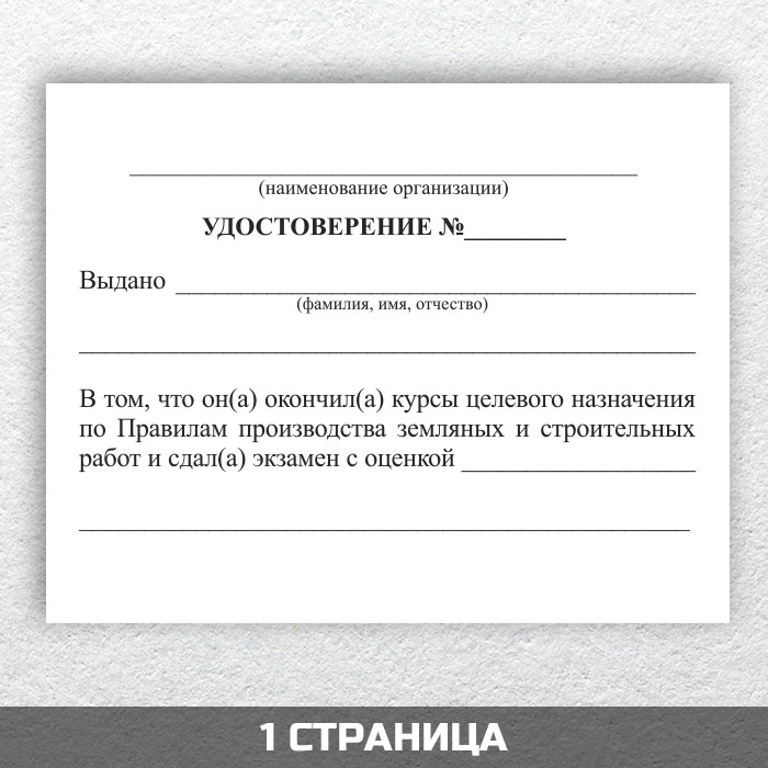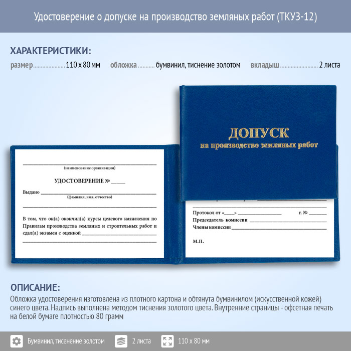 Бланк удостоверения о допуске на производство земляных работ (ТКУЗ-12) в Обнинске купить