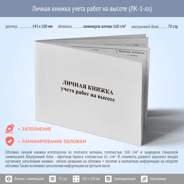 Личная книжка учета работ на высоте (с ламинир. обложки и заполнением, ЛК-1-лз) | Личная книжка учета работ на высоте (с ламинир. обложки и заполнением, ЛК-1-лз) |