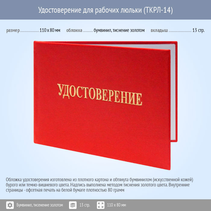 Бланк удостоверения для рабочих люльки (ТКРЛ-14) в Обнинске купить
