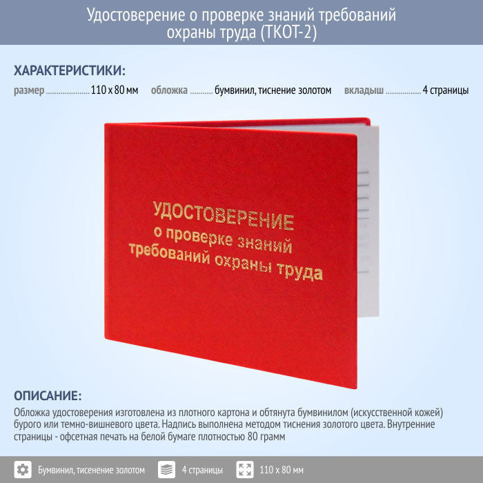 Бланк удостоверения о проверке знаний требований охраны труда (ТКОТ-2) в Обнинске купить