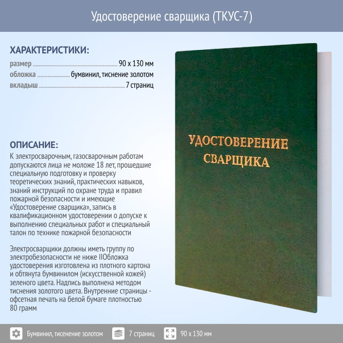 Бланк удостоверения сварщика (ТКУС-7) в Обнинске купить