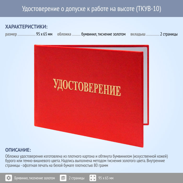 Бланк удостоверения о допуске к работе на высоте (ТКУВ-10) в Обнинске купить