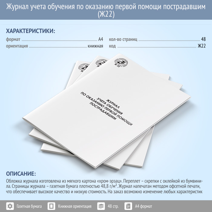 Журнал учета обучения по оказанию первой помощи пострадавшим (Ж22) в Обнинске купить