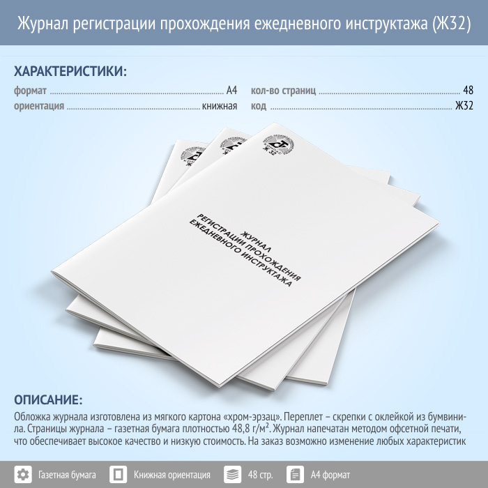 Журнал регистрации прохождения ежедневного инструктажа (Ж32) в Обнинске купить