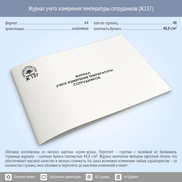 Журнал учета измерения температуры сотрудников (48 стр., Ж137) в Обнинске купить