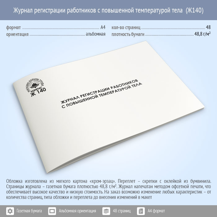 Журнал регистрации работников с повышенной температурой тела (48 стр., Ж140) в Обнинске купить