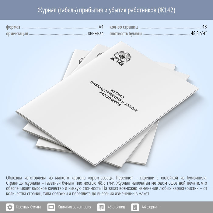 Журнал (табель) прибытия и убытия работников (48 стр., Ж142) в Обнинске купить