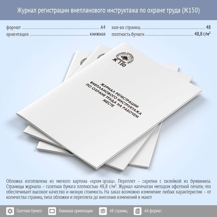 Журнал регистрации внепланового инструктажа по охране труда (48 стр., Ж150) в Обнинске купить