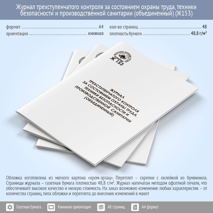 Журнал трехступенчатого контроля за состоянием охраны труда, техники безопасности и производственной санитарии (объединенный) (48 стр., Ж153) в Обнинске купить