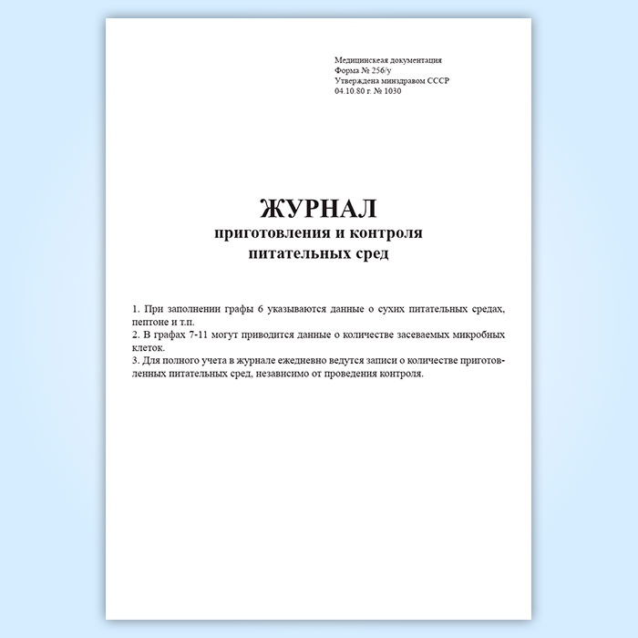 Журнал приготовления и контроля питательных сред (форма 256/у) в Обнинске купить